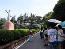 图1.党员同志在毛主席雕像前聆听讲解